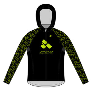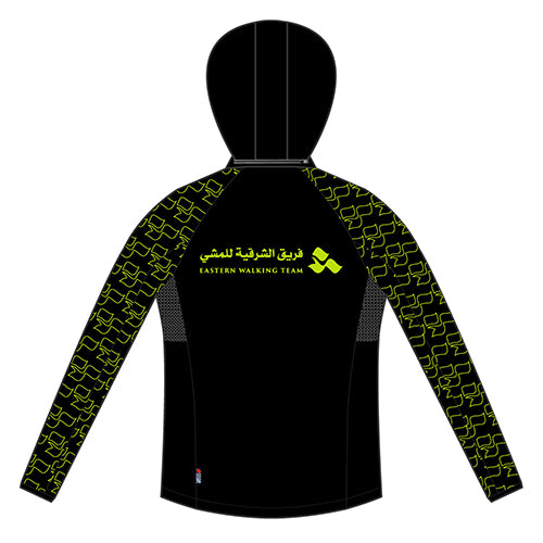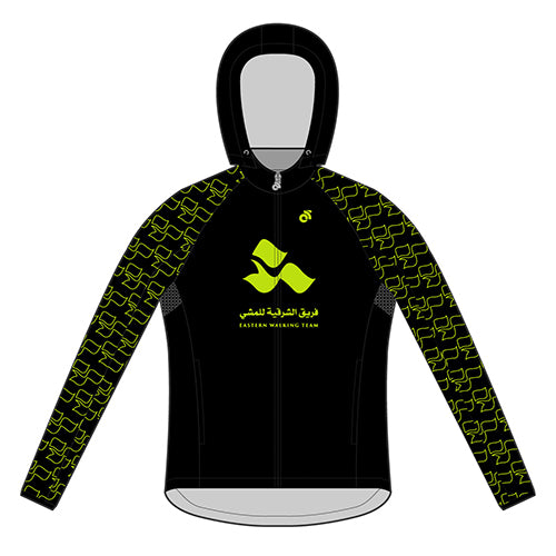 Featuring a hood in the collar and a modern tapered fit, this jacket is perfect for the active athlete looking for performance in all weather. Great for pre and post race and training, even for just walking around town!